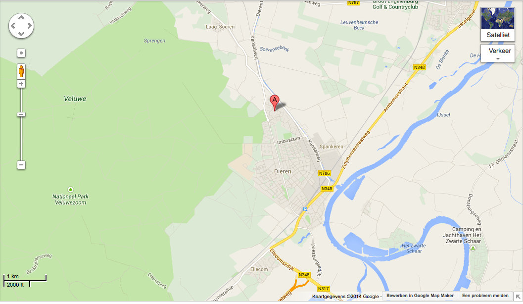 Hieronder is een kaartje te zien om een indruk te krijgen waar de boerderij ligt. (Zie ‘A’)